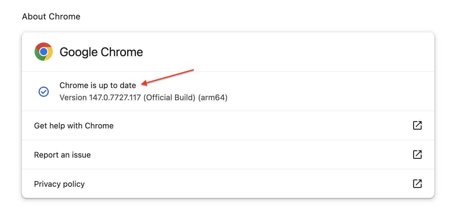 Up to Date – You’ll see “Chrome is up to date” along with your current version number