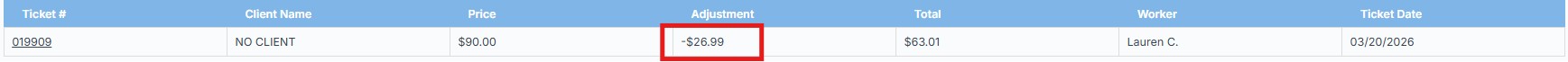 Note: In addition to manual price changes, tickets will also be included in this report when a promotion or redeeming reward points are applied, since this will modify the original amount.