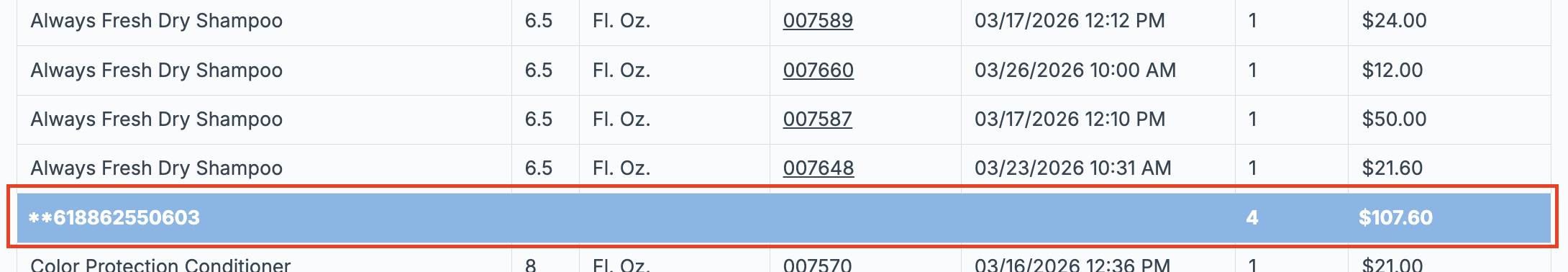 Important: If a product is sold multiple times, it will appear on separate lines for each ticket it was sold on, even within the same date range and filters.
