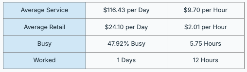 Average Retail – Displays the average retail total, calculated per day and per hour based on the selected filters.