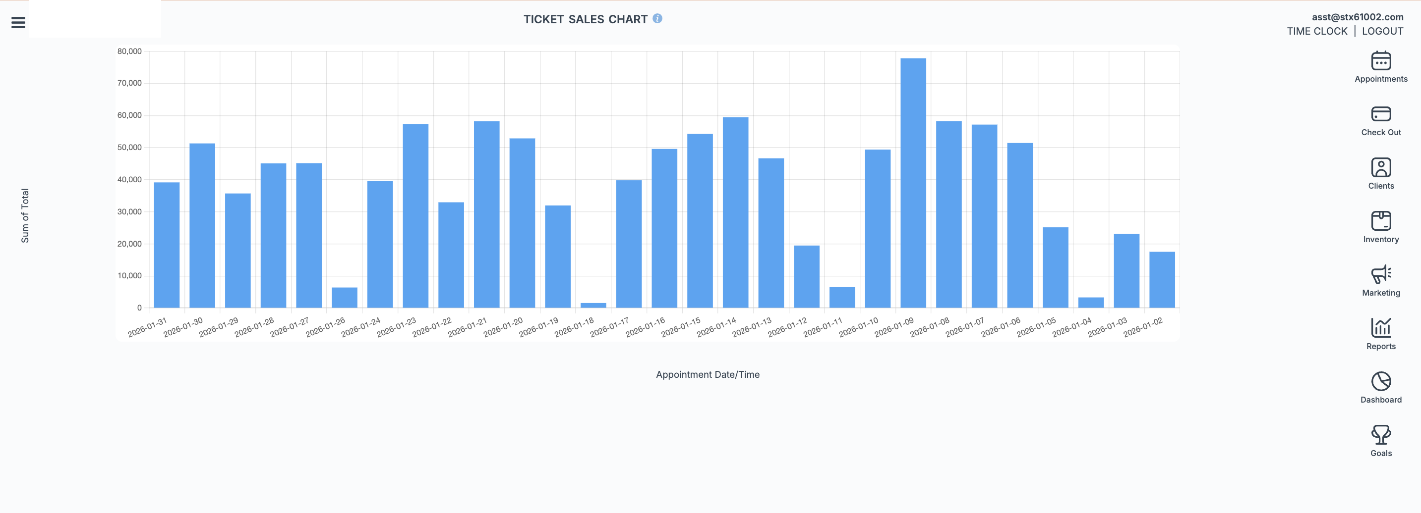 This report provides a clear visual overview of daily ticket activity, helping you review sales performance at a glance. By displaying ticket totals over time, the report makes it simple to identify trends and patterns across the previous month.