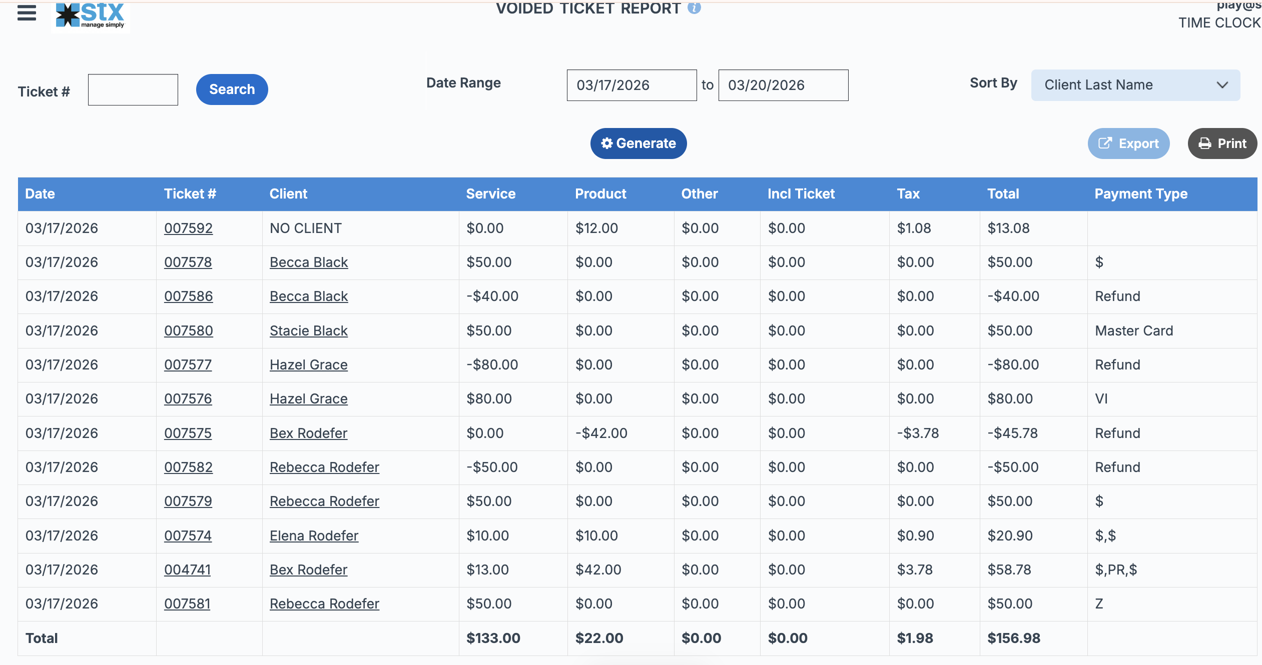 If any ticket that have been voided, its details will appear in the Voided Ticket Report. This report can be exported or printed for your records