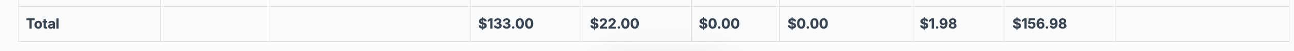 Total – Combined total of all values (services, products, other, included, and tax)