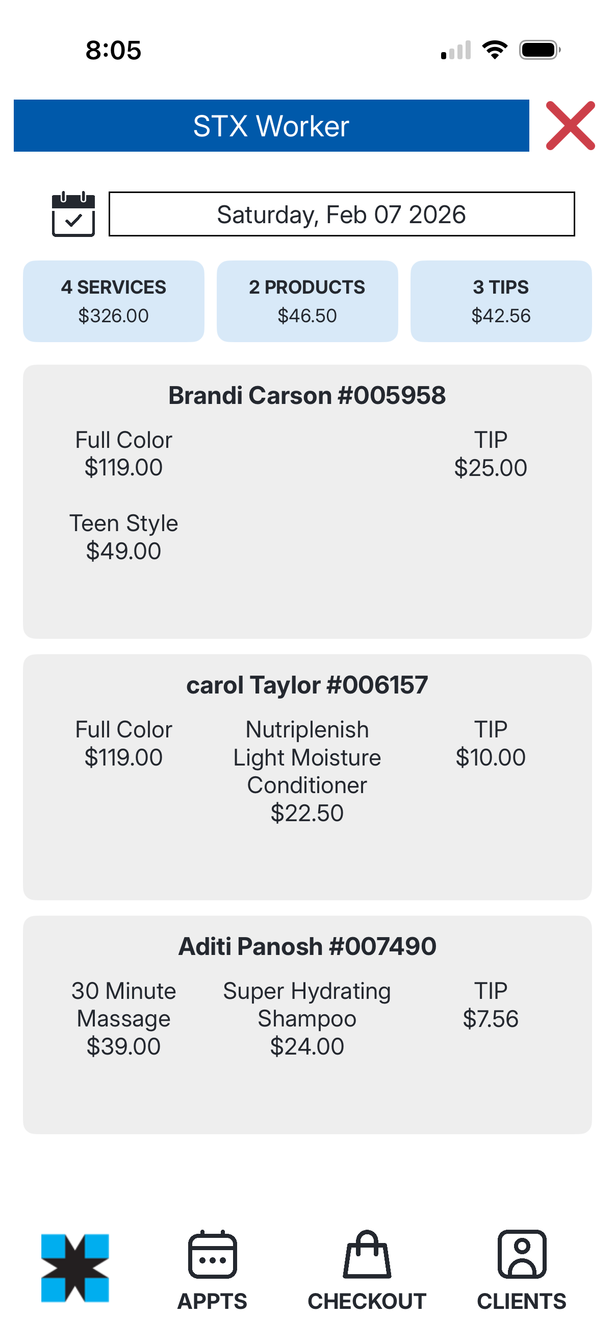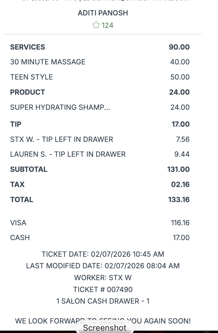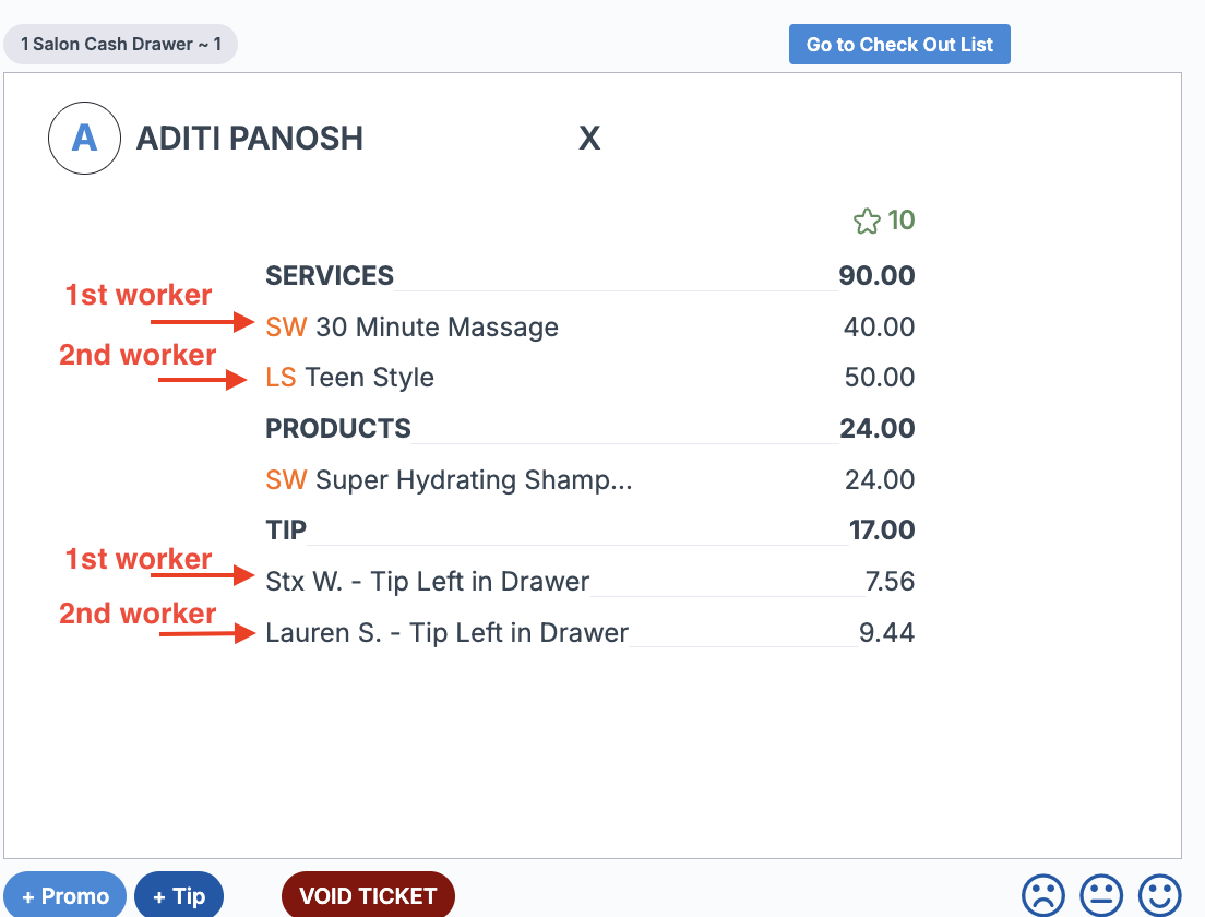 If multiple workers are added to one ticket, each worker will only see the total they personally earned.